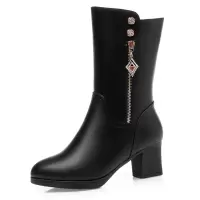 冬季长筒靴皮靴女秋冬季加绒靴软底短靴中跟皮鞋保暖中年女靴