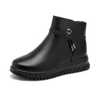 冬季真皮妈妈鞋棉鞋加绒加厚保暖中老年冬鞋防滑平底短靴