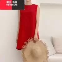YIBUSHENG红色吊带连衣裙2024新款气质女法式收腰显瘦休闲运动背心长裙