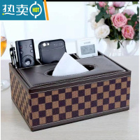 敬平多功能纸巾盒子客厅抽纸盒家用创意茶几遥控器布艺网红收纳盒欧式 后三格大格子