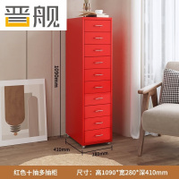 晋舰钢制文件柜带轮多抽档案柜资料柜铁皮办公柜家用储物柜红色十抽