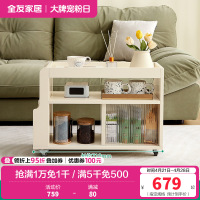 全友家居奶油风客厅餐厅小推车精细分区储物灵活万向轮沙发边柜