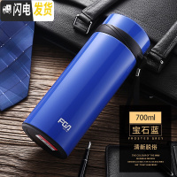 三维工匠保温杯男士大容量1000 女不锈钢水杯便携户外家用茶杯杯子 700深海蓝