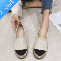 SUNTEK渔夫鞋女2023新款平底厚软底呢子拼色草编懒人一脚蹬乐福鞋大码鞋