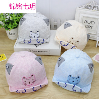 锦铭七玥2018春款彩棉婴儿帽子宝宝鸭舌帽 卡通刺绣条纹儿童软沿帽批发