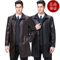 免费退换 正品海宁真皮风衣男翻领领导干部加绒加厚保暖皮衣爸爸冬装外套男反季促销特价