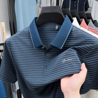 2026夏季新款短袖polo衫男翻领条纹休闲冰丝透气弹力舒适男士T恤