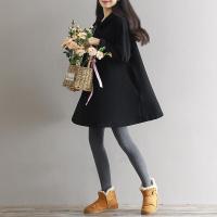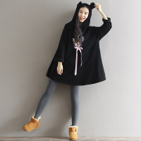 2017秋冬新款文艺森系小鹿刺绣连帽中长款大码宽松抓绒卫衣连衣裙
