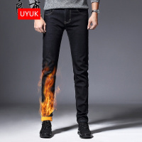 UYUK秋冬季加绒加厚牛仔裤男土修身型小脚简约青年休闲长裤子男款