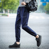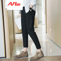 AR2017新款男土休闲裤修身小脚裤黑色长裤子青少年韩版弹力九分男裤黑色图片色图片色