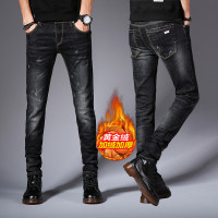 冬季加绒休闲牛仔裤男土修身型小脚显瘦细腿小腿韩版秋季长裤子男