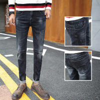 秋季青年男士牛仔裤男土修身型小脚简约加绒男生冬季长裤子男款潮