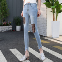 顺崇2018破洞牛仔裤女春季新款韩版九分裤小脚2018铅笔裤女裤子