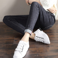 顺崇2018春装新款系带松紧腰牛仔裤女学生小脚哈伦牛仔裤子