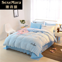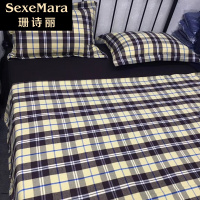 珊诗丽秒杀全棉拉绒色织四件套英伦格子纯棉暖绒磨毛家纺套件