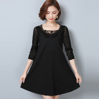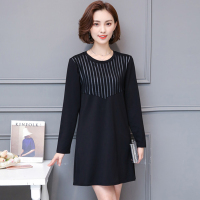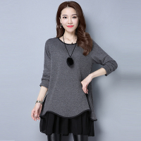 大码女装2017新款显瘦长袖打底衫胖mm圆领中长款连衣裙衣服外穿