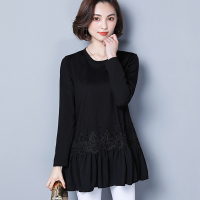 大码女装蕾丝衫2017秋装新款胖MM韩版百搭气质打底衫长袖女上衣潮