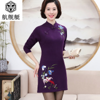 2017春秋妈妈装旗袍领打底衫连衣裙中长款中老年女装针织衫毛衣裙