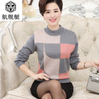 2017新款中老年女装圆领针织打底衫中年妈妈装秋冬装薄款长袖毛衣