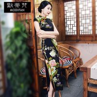 默蒂梵旗袍2017新改良大码长款复古修身双层表演走秀旗袍连衣裙FC124