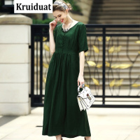 Kruidvat2017春夏女装新款V领五分袖提花色大码长款修身连衣裙女B021