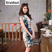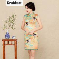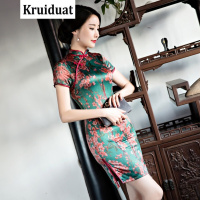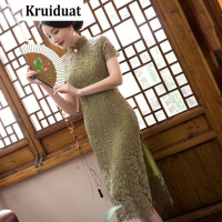 YIBUSHENG绿色新中式盘扣小飞袖气质连衣裙女季短款收腰显瘦改良国风旗袍
