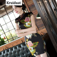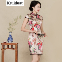 YIBUSHENG新中式轻国风改良旗袍短袖连衣裙2024季新款小个子收腰短款裙子
