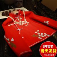 2017秋冬红色中式复古加厚毛呢短上衣外套斜襟刺绣改良中国风旗袍