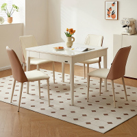 全友家居2024新款奶油风客厅钢化玻璃长方形吃饭实木脚餐桌