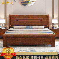 鑫金虎 胡桃木现代中式双人床实木床框架床1.5米