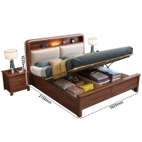 苏宁 质凡 宿舍公寓胡桃木带软包实木床气压结构/ZF-SMC064/1.8米*2米