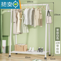 敬平晾衣架落地折叠家用晒衣架阳台卧室挂衣架子室内简易单杆式衣帽架 白-单层铁网+侧挂钩[100cm宽]