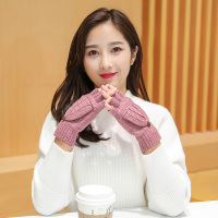 手套男女冬情侣韩版保暖针织兔羊毛学生写打字可爱露半指翻盖手套