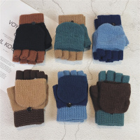 翻盖手套女士冬季半指撞色针织韩版学生加厚保暖露指半截潮男骑车