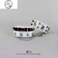 JiMi新款酷女孩朋克pu皮铆钉手链个性骷髅街舞配饰嘻哈手环宽手镯潮男