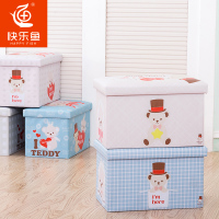 快乐鱼泰迪熊款皮革储物凳可坐儿童沙发凳换鞋凳多功能折叠收纳凳