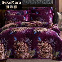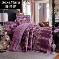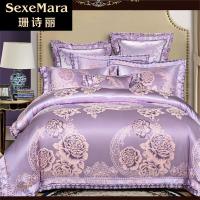 珊诗丽欧式60全棉贡缎提花绣花婚庆纯棉4天丝长绒棉四件套床单被套1.5/1.8/2/2.2