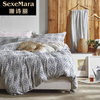 珊诗丽天竺棉针织棉全棉四件套欧式简约提花纯棉被套1.8米床笠床上用品