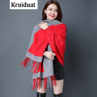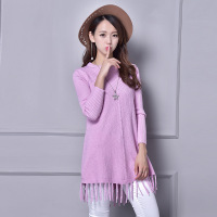 Kruidvat2017春秋季撞色下摆流苏针织开衫披肩女韩版羊毛流苏毛衣M018灰色均码