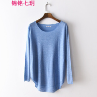 锦铭七玥2018春款女装蝙蝠长袖不规则下摆T恤 竹节棉大码宽松圆领打底衫女