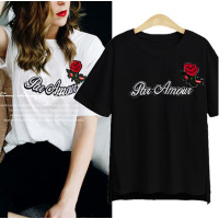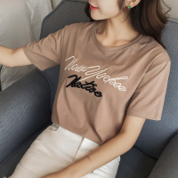 薇侣2017韩版字母夏季新款刺绣打底衫宽松显瘦短袖t恤女7221