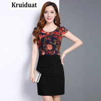 Kruidvat印花连衣裙女2017夏季新款收腰显瘦大码女装韩版时尚气质