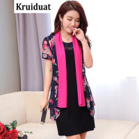 Kruidvat印花雪纺两件套连衣裙女2017夏季新款时尚气质优雅大码女装