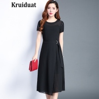 Kruidvat2017夏季新款中长款大码女装拼接优雅显瘦A字裙YX黑色