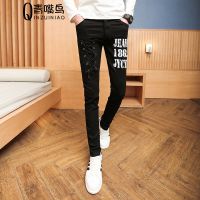 2017新款skxgf冬季弹力牛仔裤男韩版修身潮小脚铅笔紧身裤子男生显瘦男裤