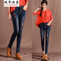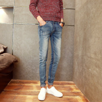 YANXU潮牌水洗灰色裤子男修身九分牛仔裤春季新款百搭韩版紧身小脚长裤
