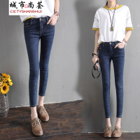 衣姣人(YIJIAOREN)秋季加厚牛仔裤女显瘦小脚铅笔裤大码修身弹力紧身裤深蓝色
