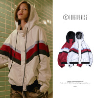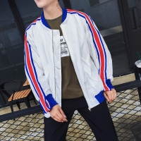 新款港风时尚夹克彩条织带外套青年宽松棒球服校服潮男