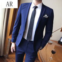 AR秋新款英伦韩版纯色一粒扣两件套西装男结婚伴郎礼服修身西服套装