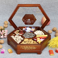 中式实木制糖果盒新年干果盒木质果盘创意坚果盒分格带盖大号客厅